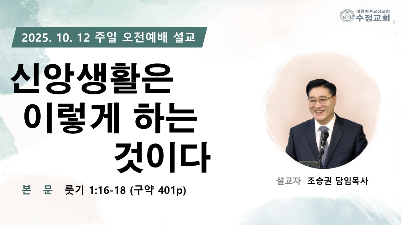| 2025.10.12 창원수정교회 주일 오전 예배 담임 목사님 설교 말씀 | 조승권 목사님 | 2025-10-12 | |||