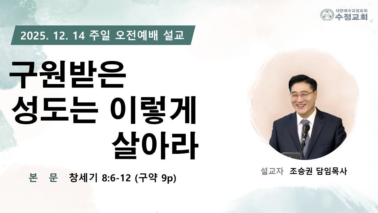 | 2025.12.14 창원수정교회 주일 오전 예배 담임 목사님 설교 말씀 | 조승권 목사님 | 2025-12-14 | |||