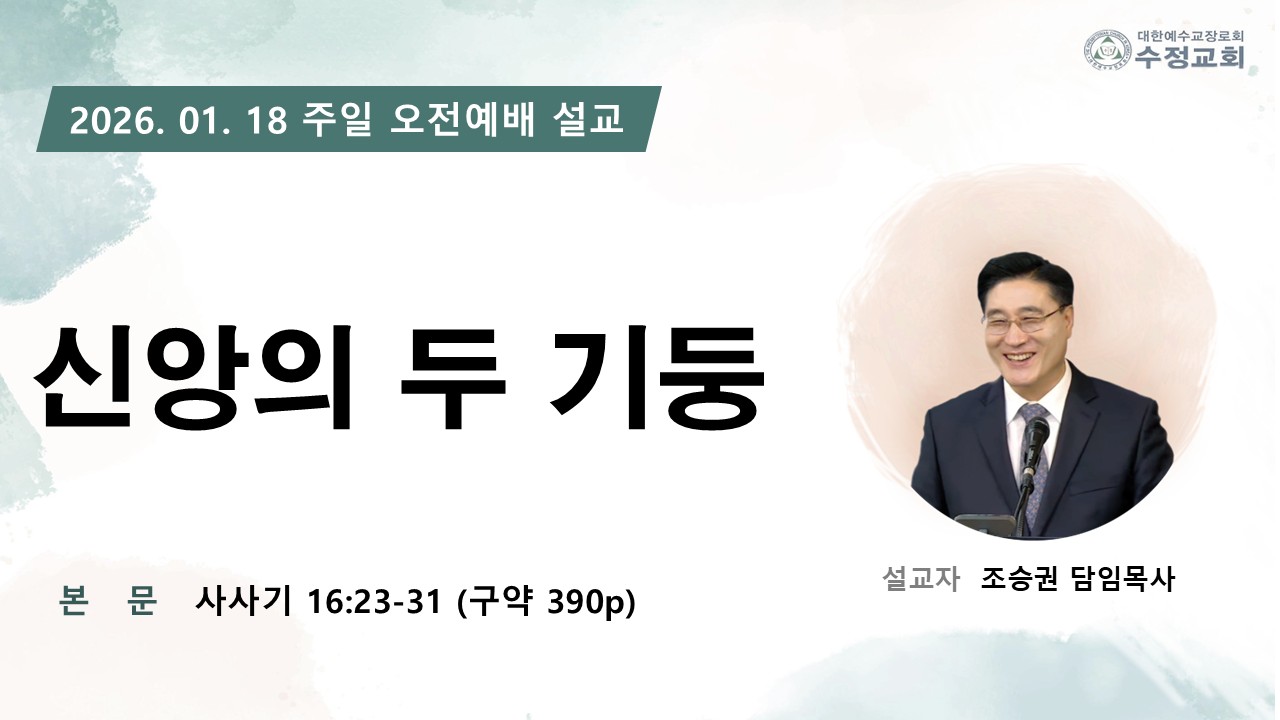 | 2026.01.18 창원수정교회 주일 오전 예배 담임 목사님 설교 말씀 | 조승권 목사님 | 2026-01-18 | |||