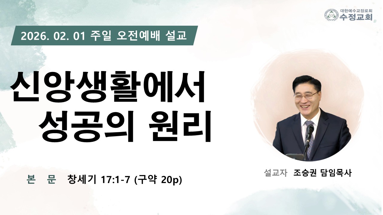 | 2026.02.01 창원수정교회 주일 오전 예배 담임 목사님 설교 말씀 | 조승권 목사님 | 2026-02-01 | |||