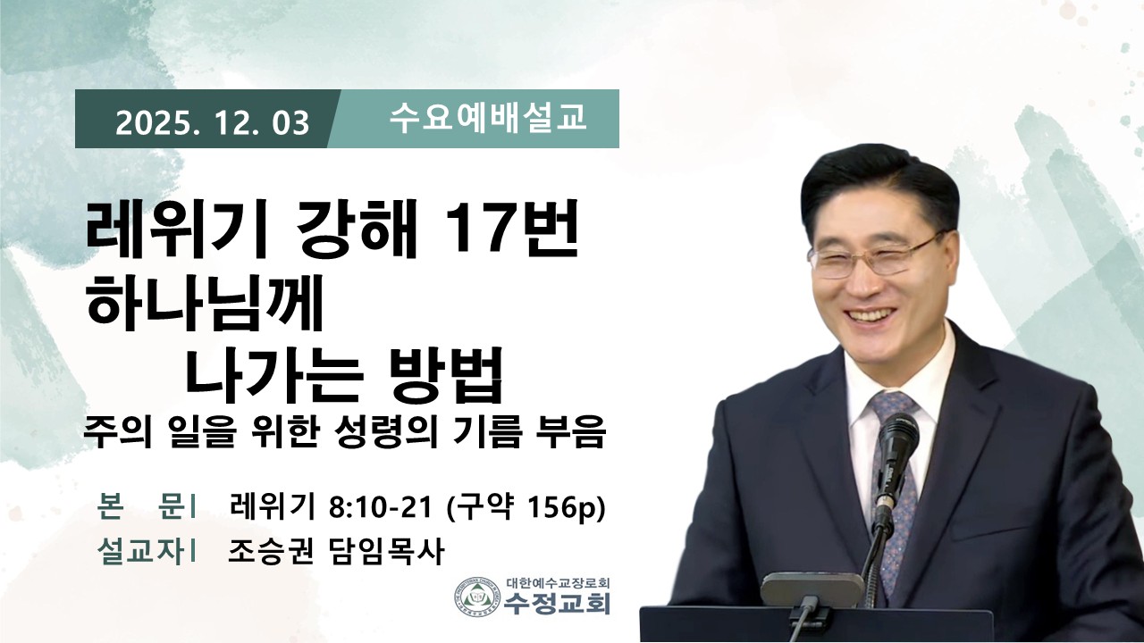 | 2025.12.03 창원수정교회 수요 예배 담임 목사님 설교 말씀 | 조승권 목사님 | 2025-12-03 | |||