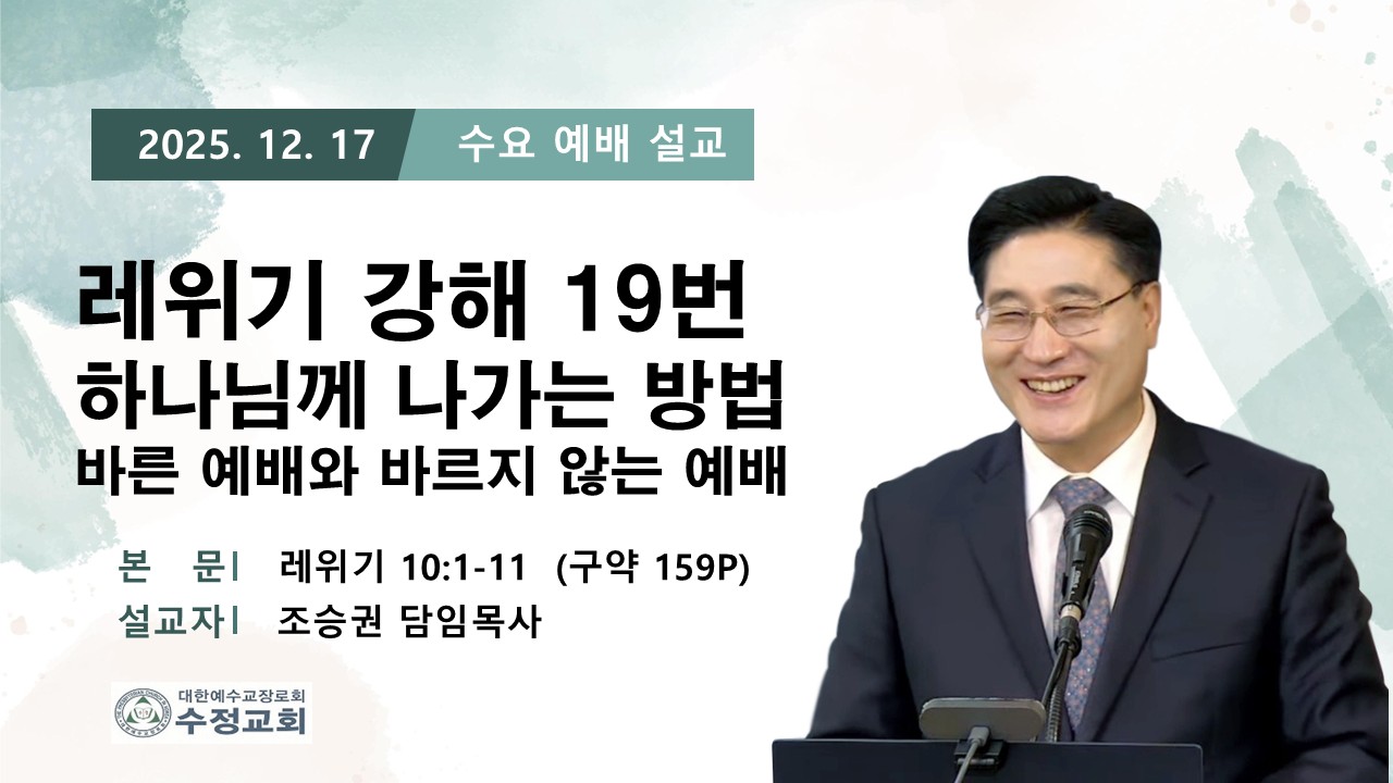 | 2025.12.17 창원수정교회 수요 예배 담임 목사님 설교 말씀 | 조승권 목사님 | 2025-12-17 | |||