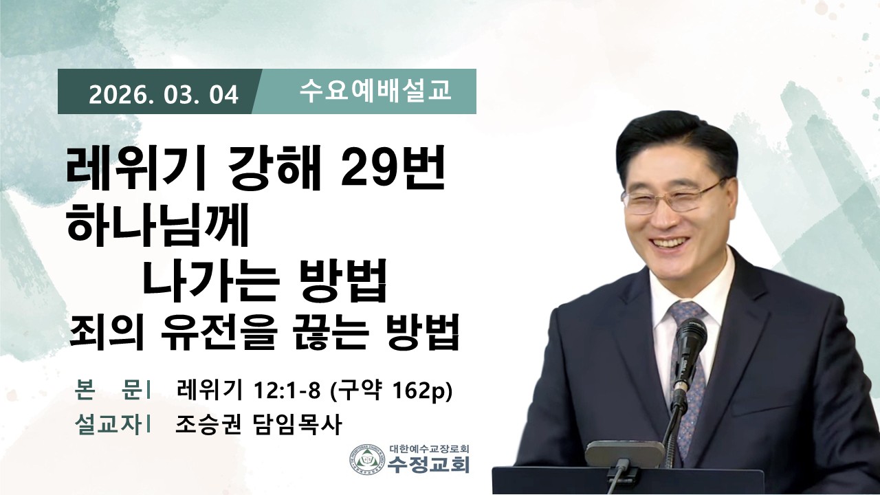 | 2026.03.04 창원수정교회 수요 예배 담임 목사님 설교 말씀 | 조승권 목사님 | 2026-03-04 | |||
