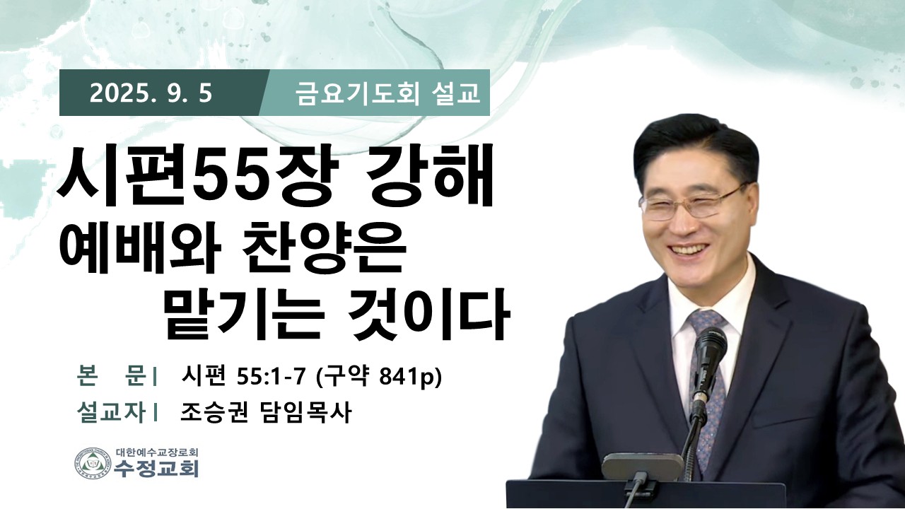 | 2025.09.05 창원수정교회 금요 기도회 담임 목사님 설교 말씀 | 조승권 목사님 | 2025-09-05 | |||