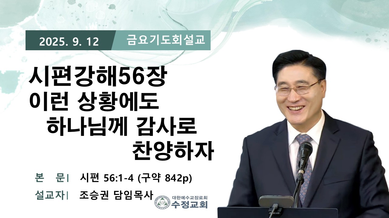 | 2025.09.12 창원수정교회 금요 기도회 담임 목사님 설교 말씀 | 조승권 목사님 | 2025-09-12 | |||