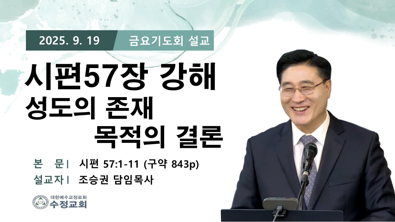 | 2025.09.19 창원수정교회 금요 기도회 담임 목사님 설교 말씀 | 조승권 목사님 | 2025-09-19 | |||