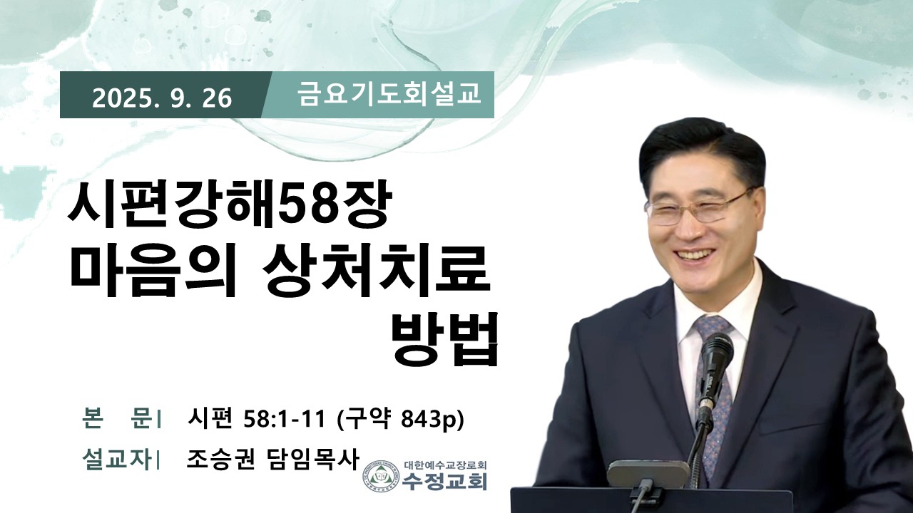 | 2025.09.26 창원수정교회 금요 기도회 담임 목사님 설교 말씀 | 조승권 목사님 | 2025-09-26 | |||