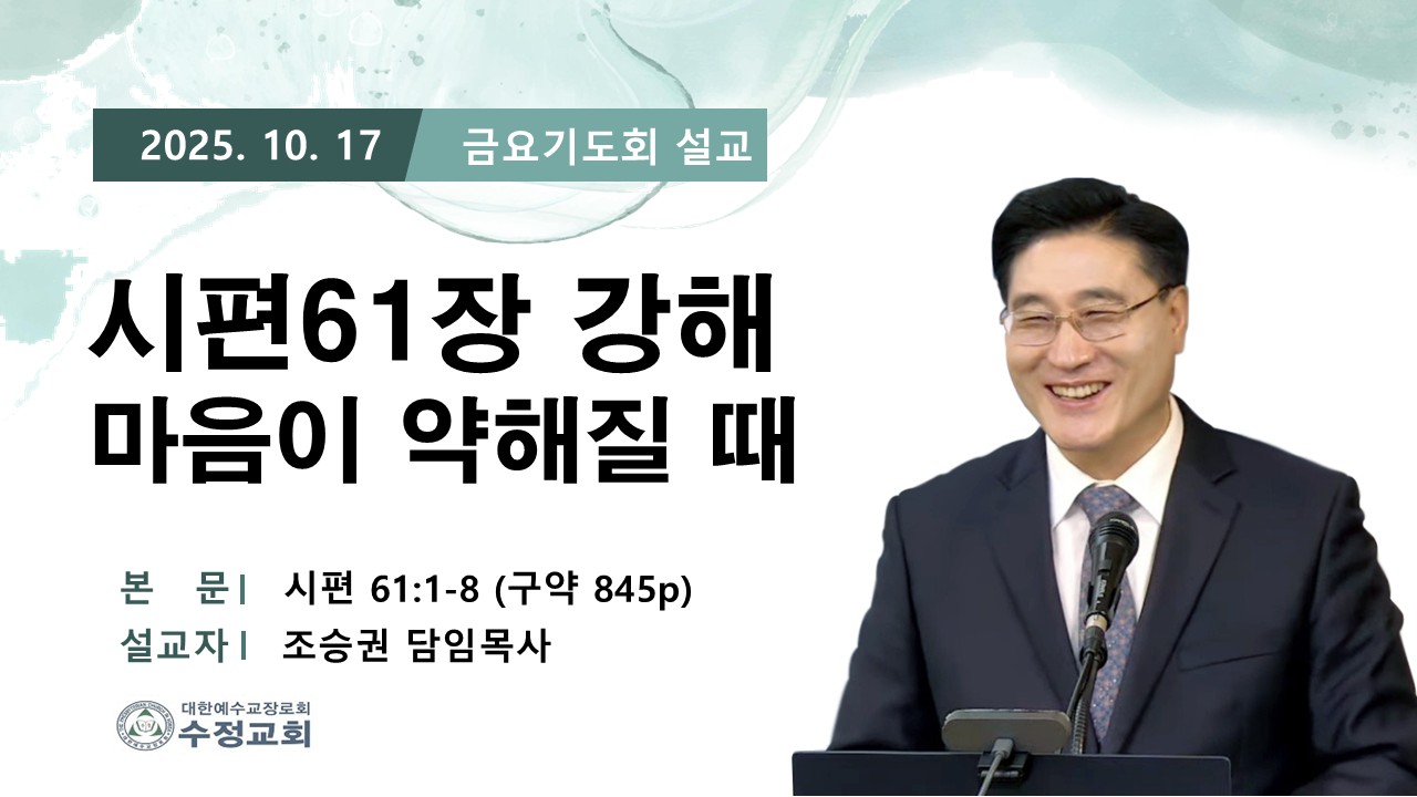 | 2025.10.17 창원수정교회 금요 기도회 담임 목사님 설교 말씀 | 조승권 목사님 | 2025-10-17 | |||