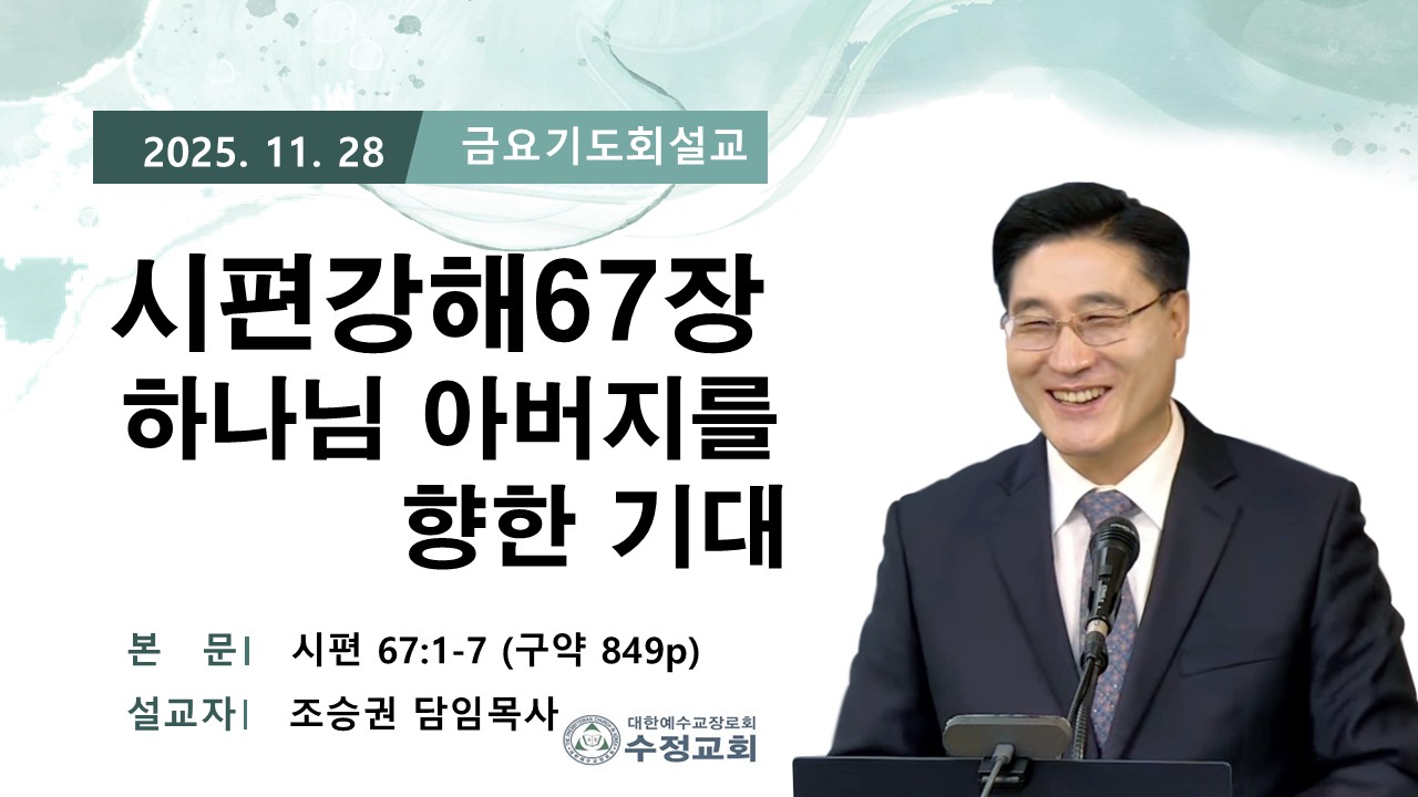 | 2025.11.28 창원수정교회 금요 기도회 담임 목사님 설교 말씀 | 조승권 목사님 | 2025-11-28 | |||