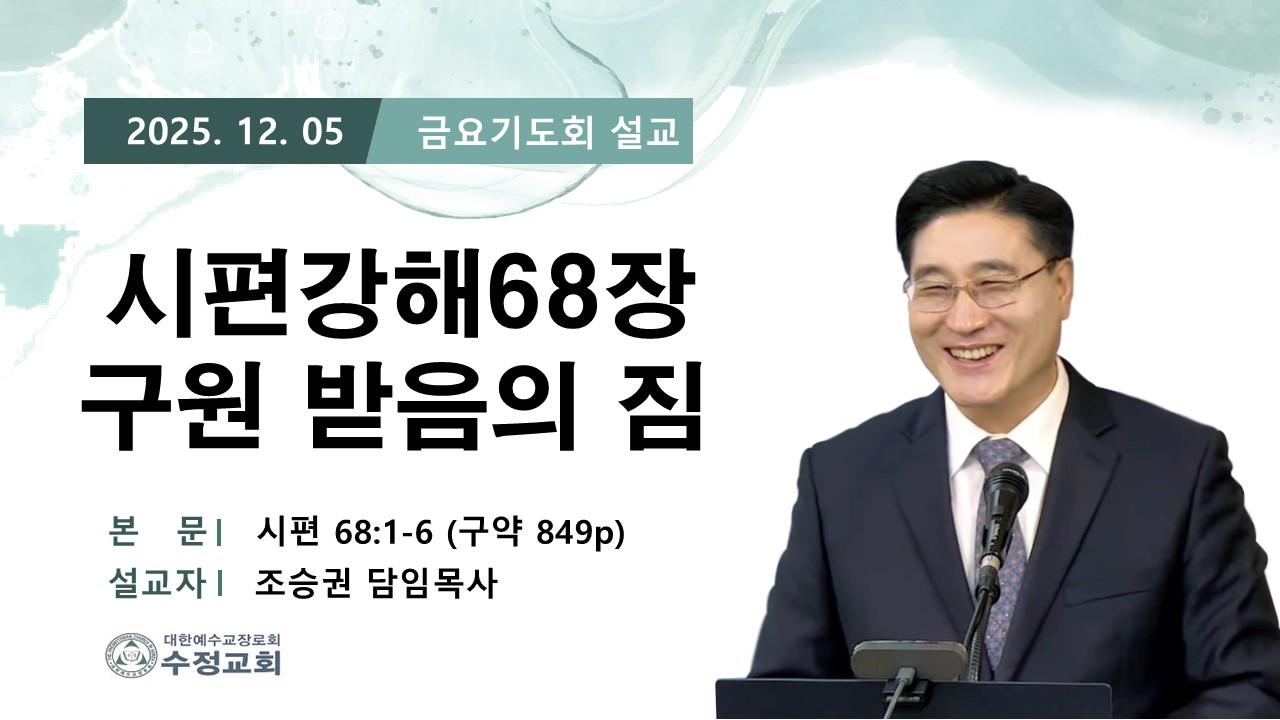 | 2025.12.05 창원수정교회 금요 기도회 목사님 설교 말씀 | 조승권 목사님 | 2025-12-05 | |||