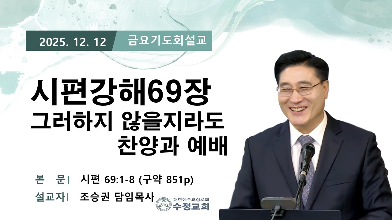 | 2025.12.12 창원수정교회 금요 기도회 담임 목사님 설교 말씀 | 조승권 목사님 | 2025-12-12 | |||
