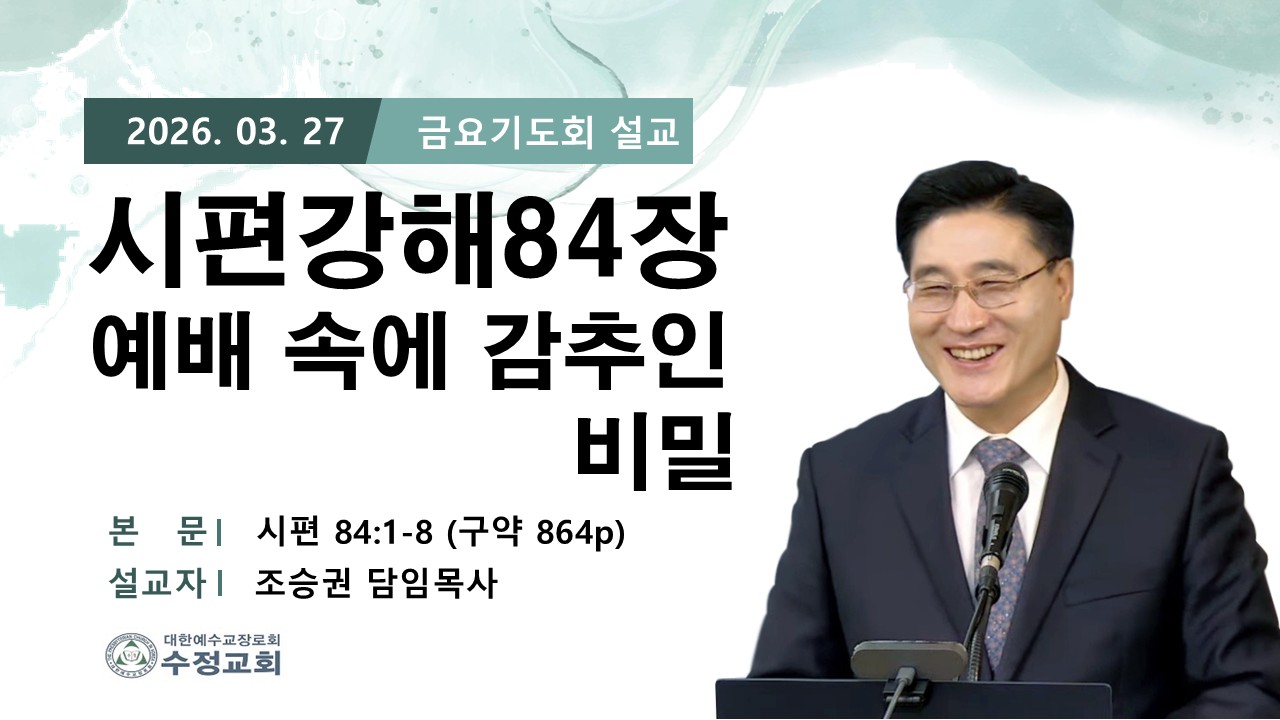 | 2026.03.27 창원수정교회 금요 기도회 담임 목사님 설교 말씀 | 조승권 목사님 | 2026-03-27 | |||